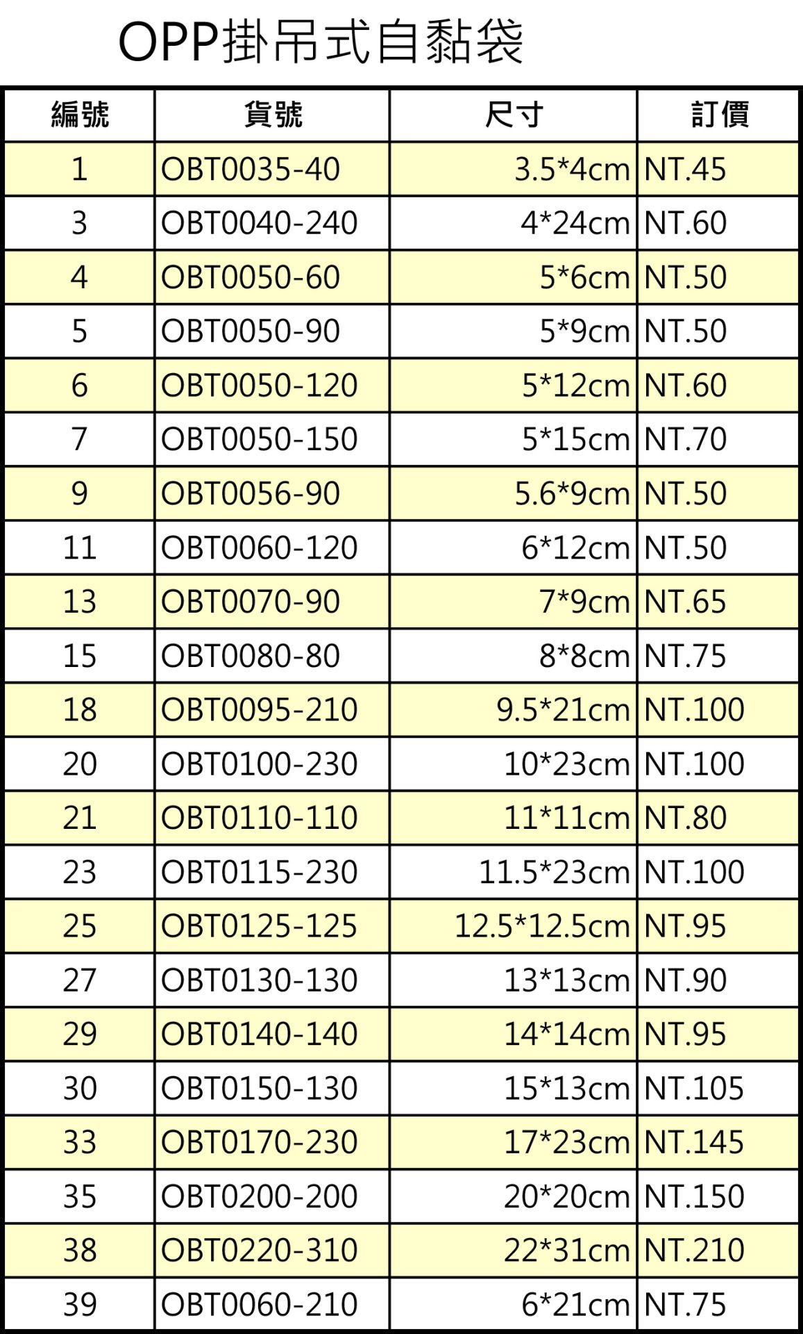 OPP掛吊式自黏袋