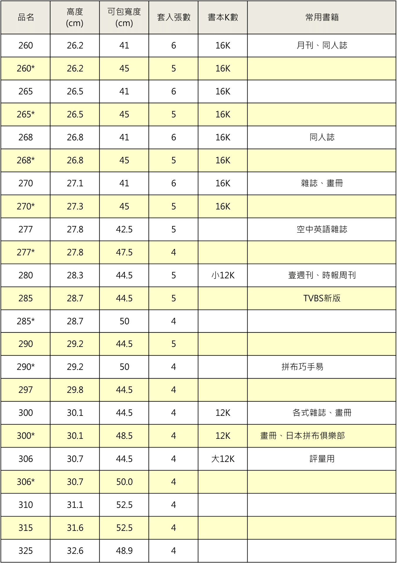 書套尺寸表